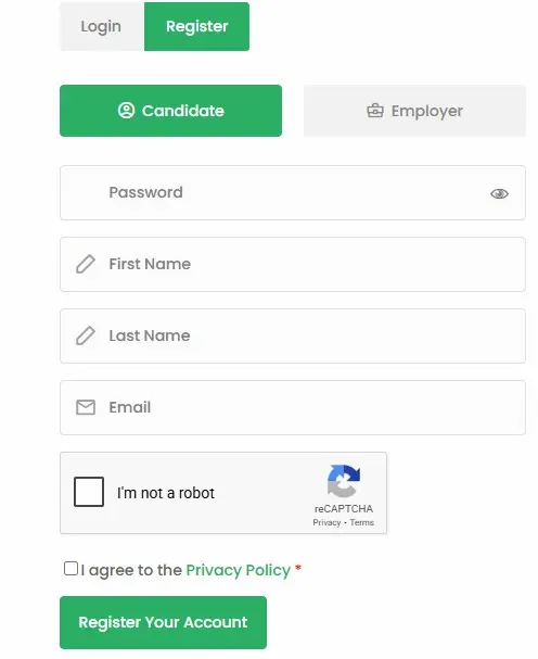 Register as a candidate to access your dashboard, applications, and profile tools.